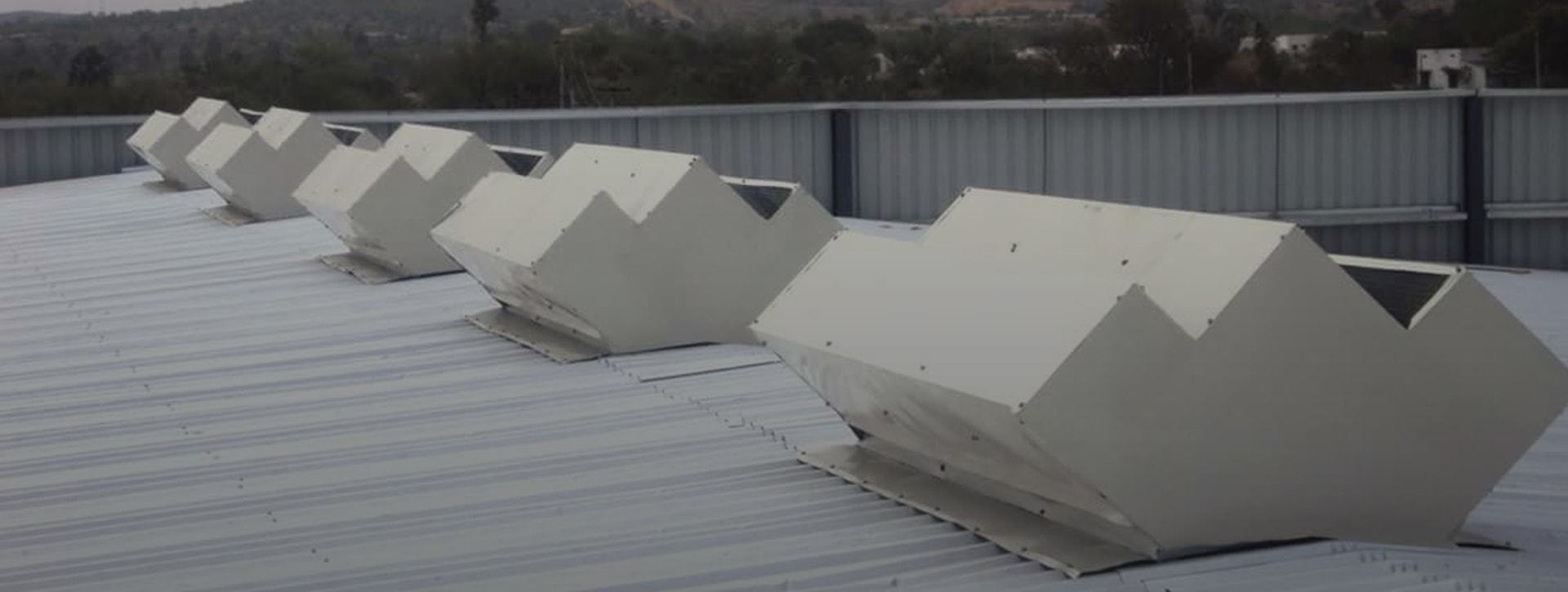 We are the leading manufacturers of wind powered ventilation and cooling systems. We manufacture products like Turbo Ventilator, Polycarbonate Base Plate, Ridge Ventilation System, uPVC Windows, Roof Ventilators. Our roof Ventilators are highly effective in providing proper ventilation to industrial sheds, thus removing heat, dust, gases, fumes and smoke in any season, in any weather. Natural Cooling Systems innovative design can be conveniently accommodated on any type of roof sheet. The pics in the slideshow are from actual site installation pics. The material used for ventilators like turbo, ridge, uPVC widows depends on customer specifications and is either Aluminium, polycarbon or Stainless Steel.
